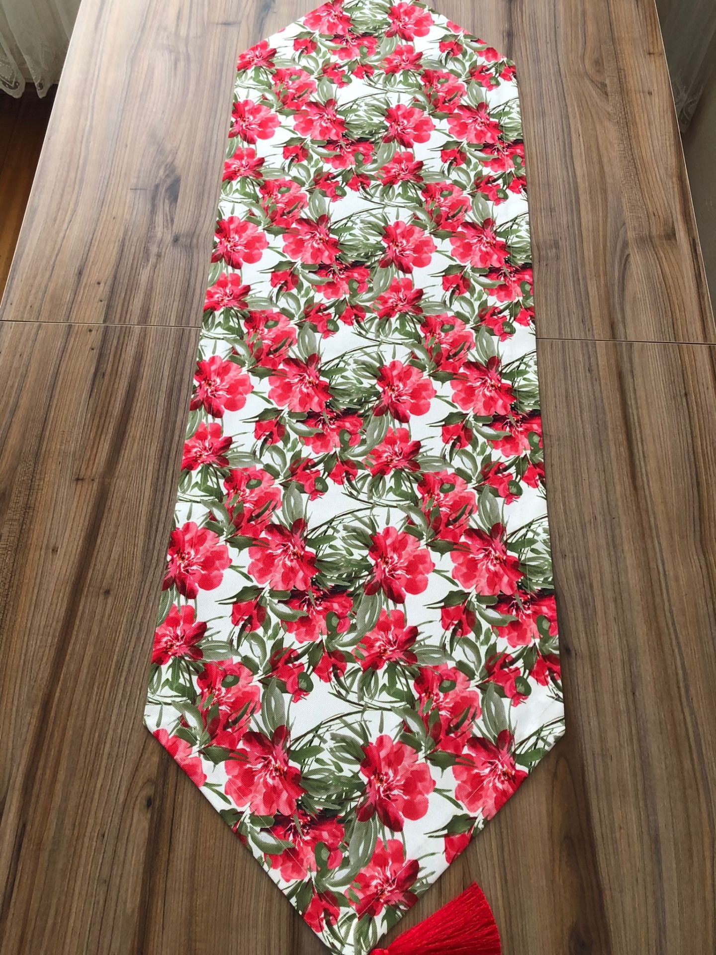 BEYAZ ZEMİN KIRMIZI ÇİÇEK DETAYLI RUNNER&SUPLA
