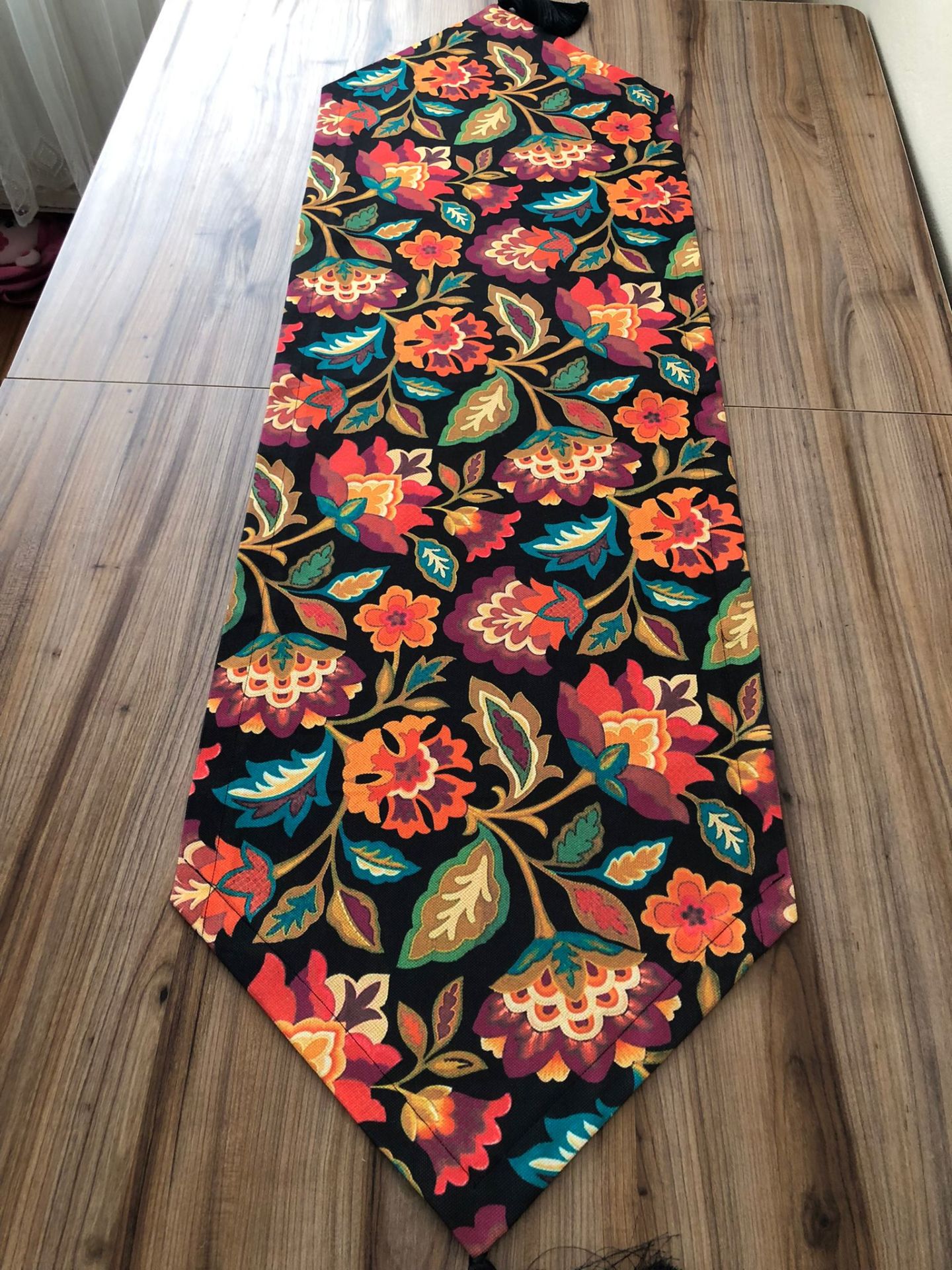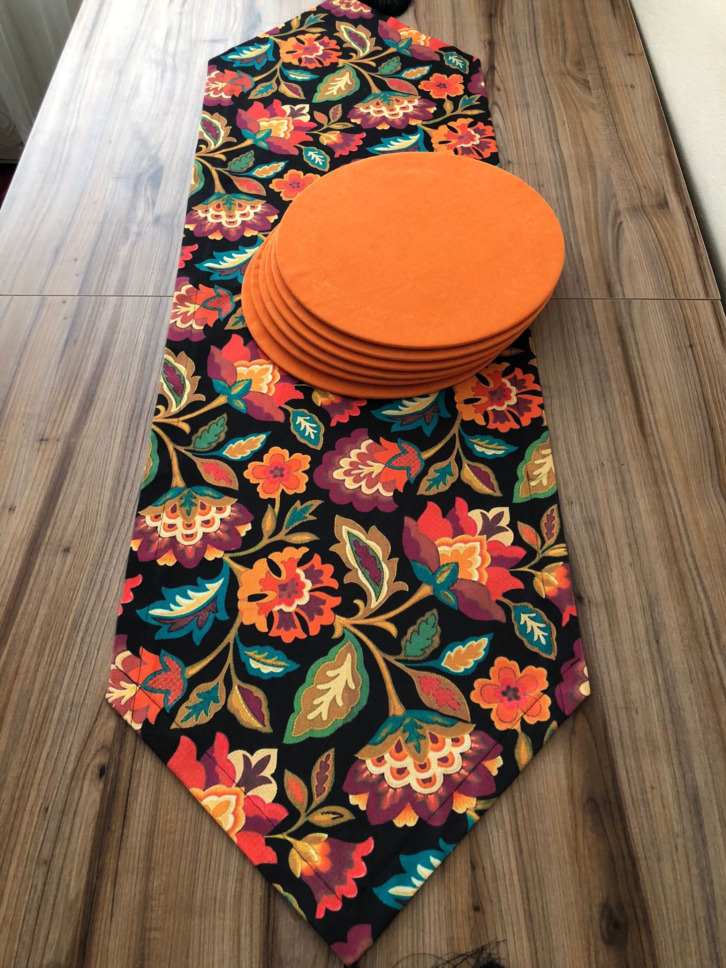 ÇİÇEKLİ ŞAL DESENLİ RUNNER & TURUNCU SUPLA