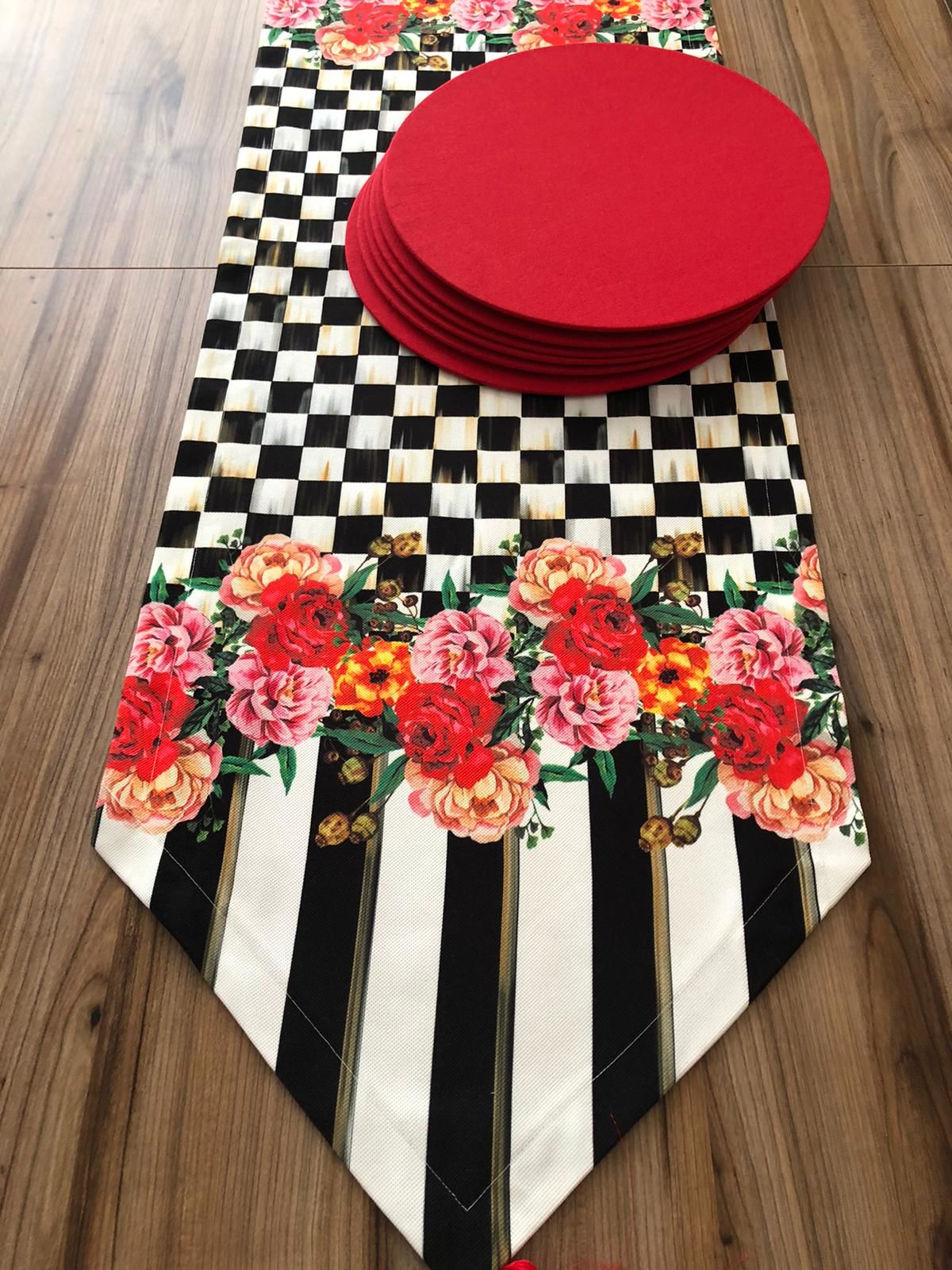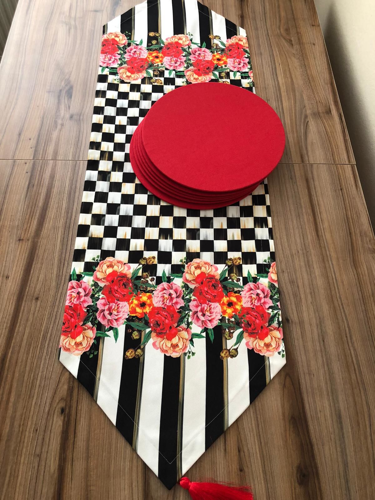 KIRMIZI GÜL DESENLİ RUNNER & SUPLA