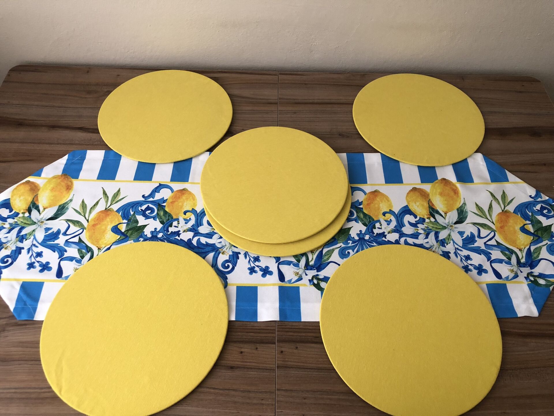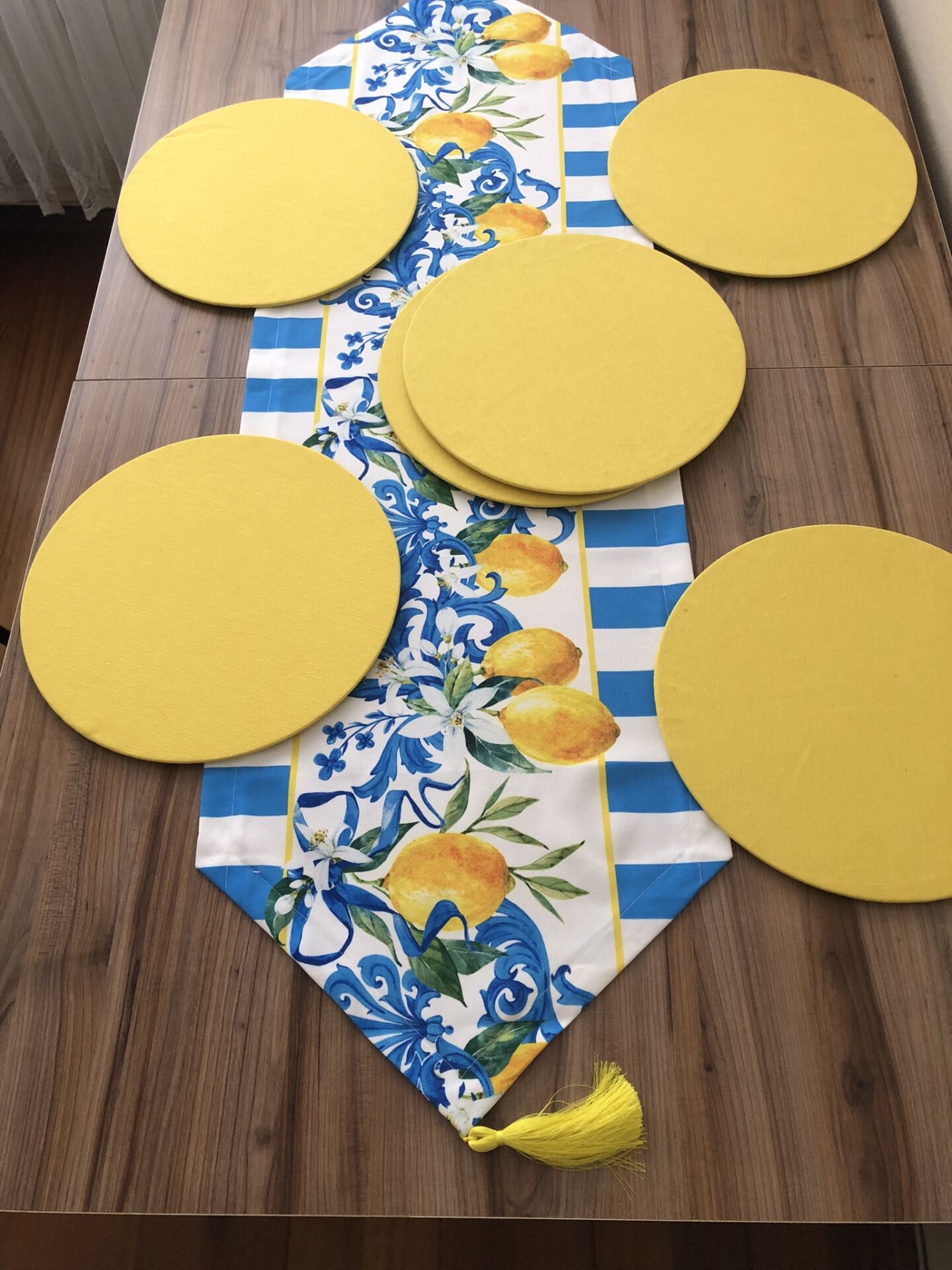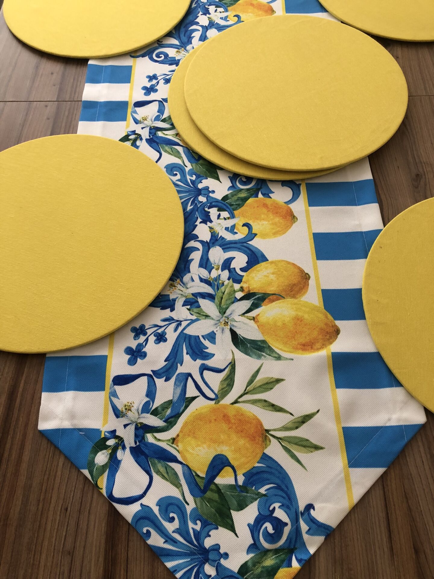 MAVİ ÇİZGİLİ LİMON DESENLİ RUNNER & SUPLA