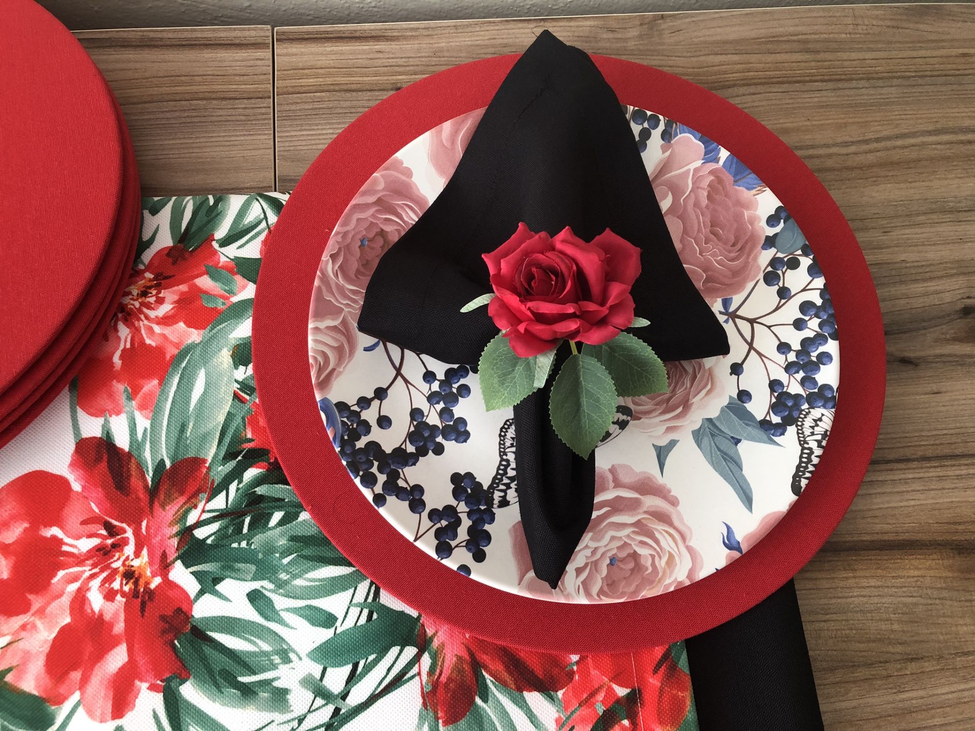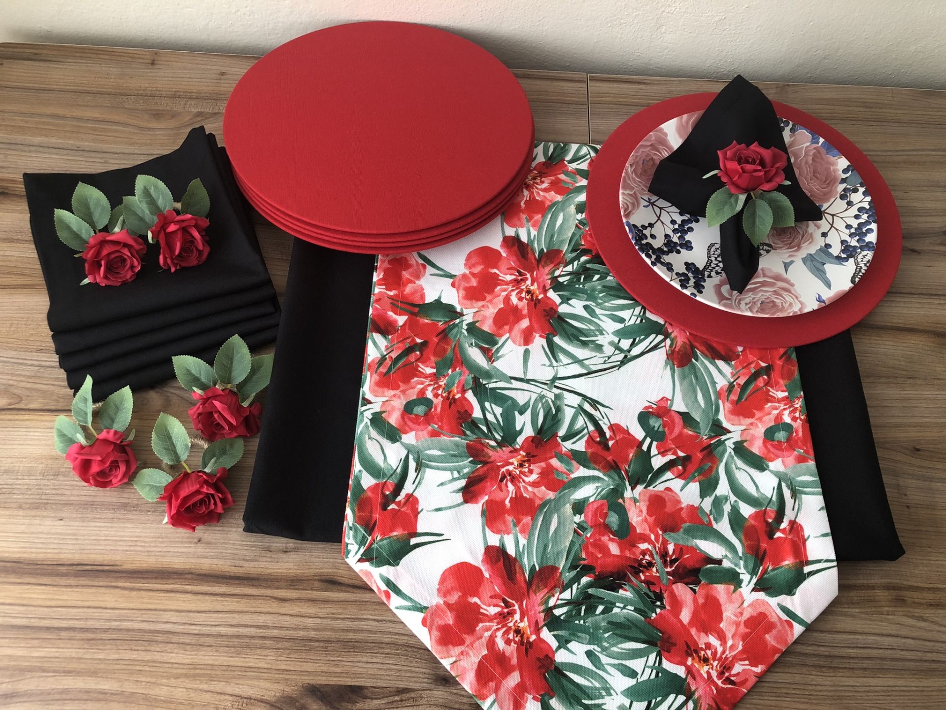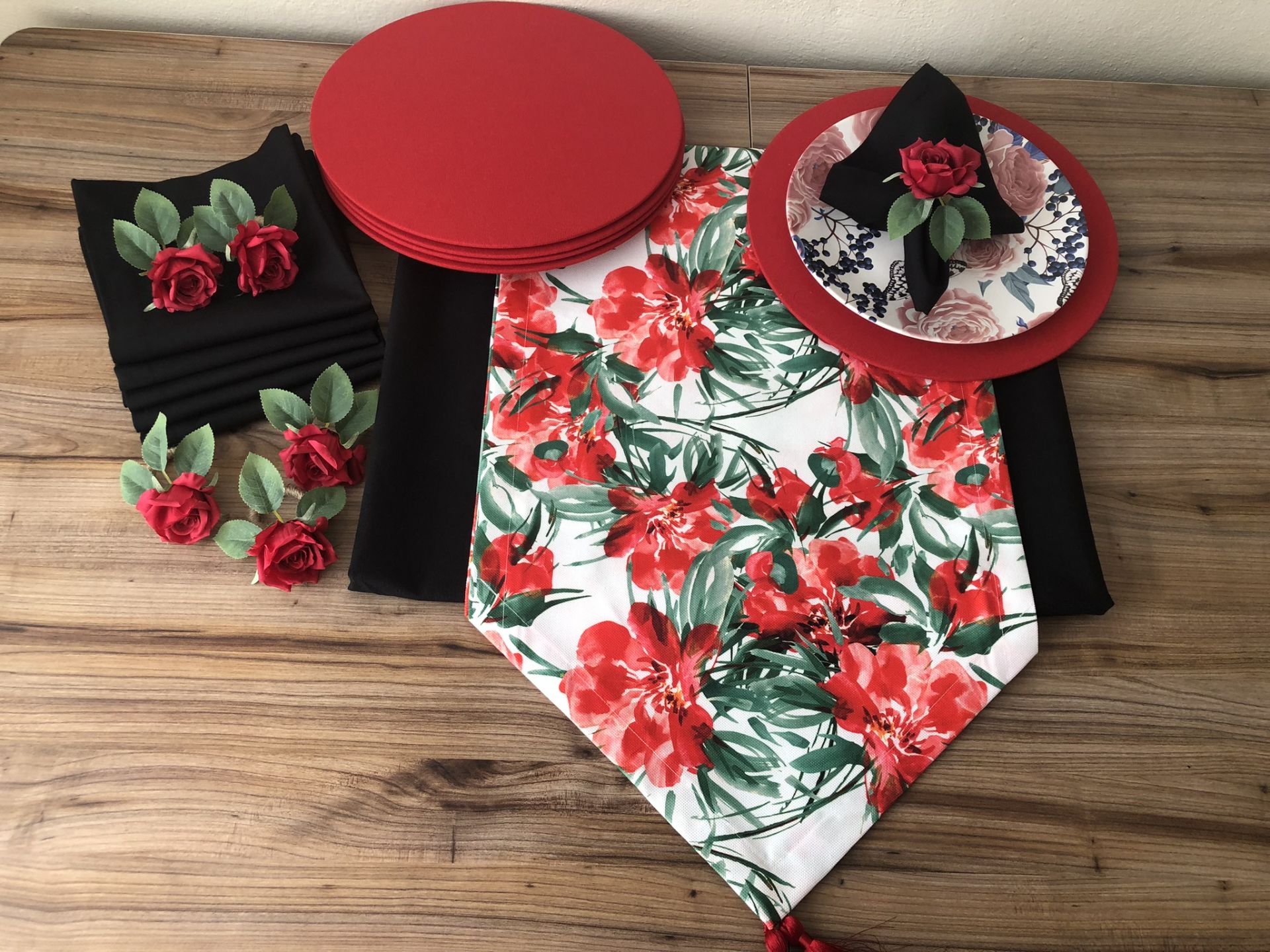 SOFRA SUNUM SETİ BEYAZ ZEMİN KIRMIZI ÇİÇEK DESENLİ TAKIM