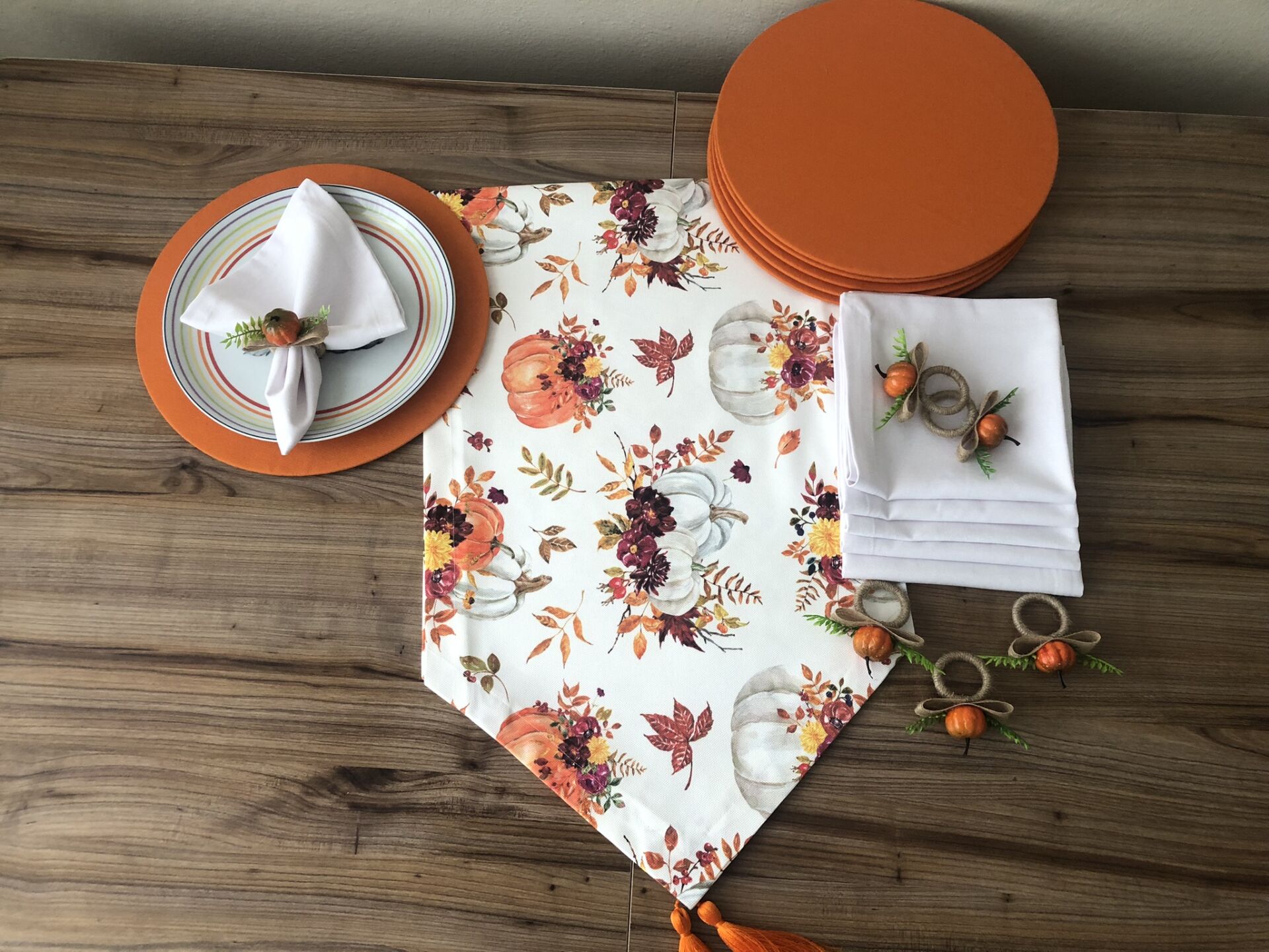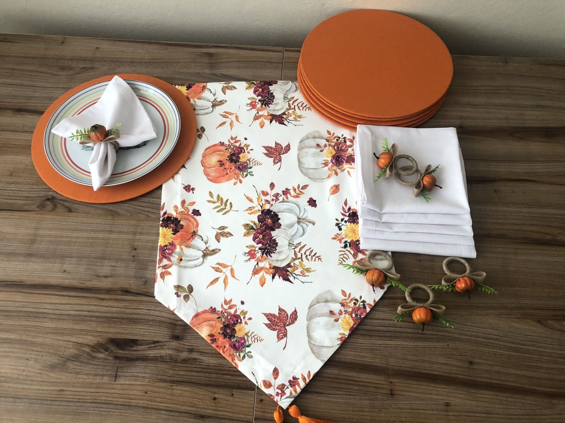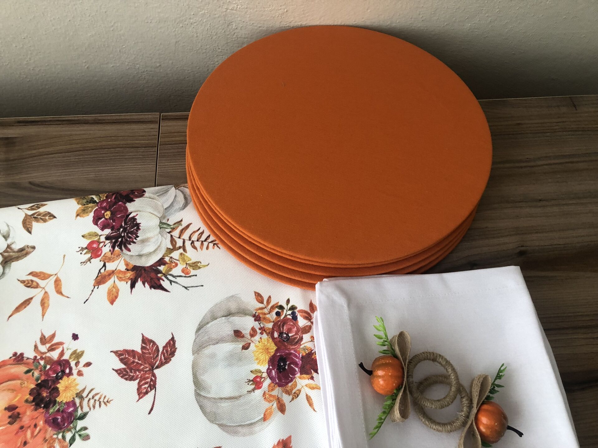 v DÜZ RENK DUCK BEZİ KUMAŞLARLA ÖZENLE YAPILMIŞ SUPLALAR 33 CM ÇAPA VE PEÇETELER 40X40 CM SAHİPTİR.