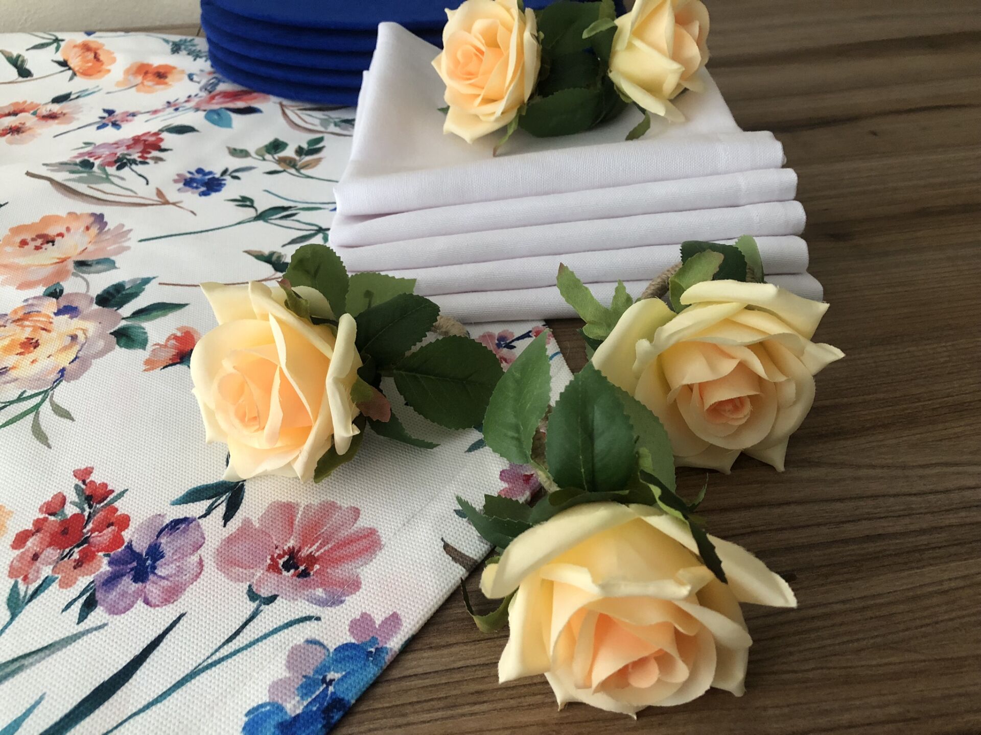 v DÜZ RENK DUCK BEZİ KUMAŞLARLA ÖZENLE YAPILMIŞ SUPLALAR 33 CM ÇAPA VE PEÇETELER 40X40 CM SAHİPTİR.