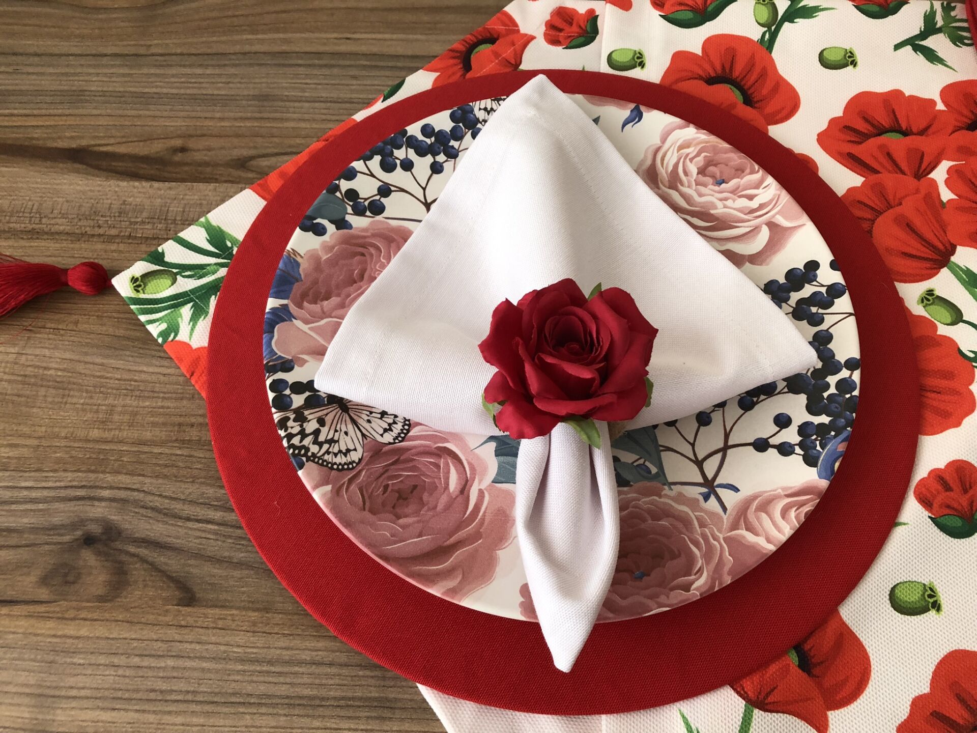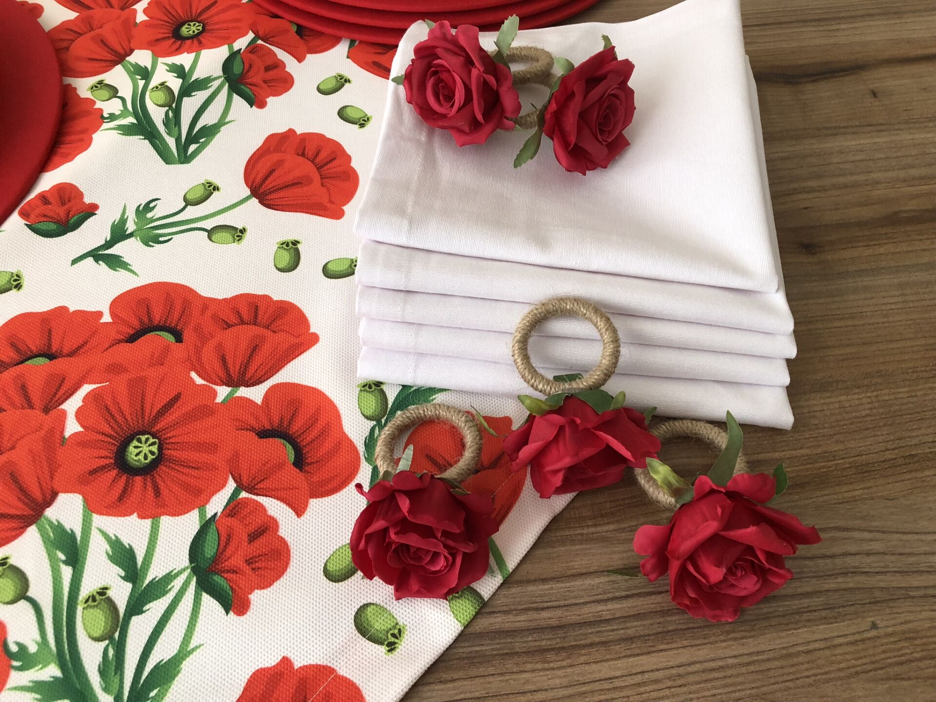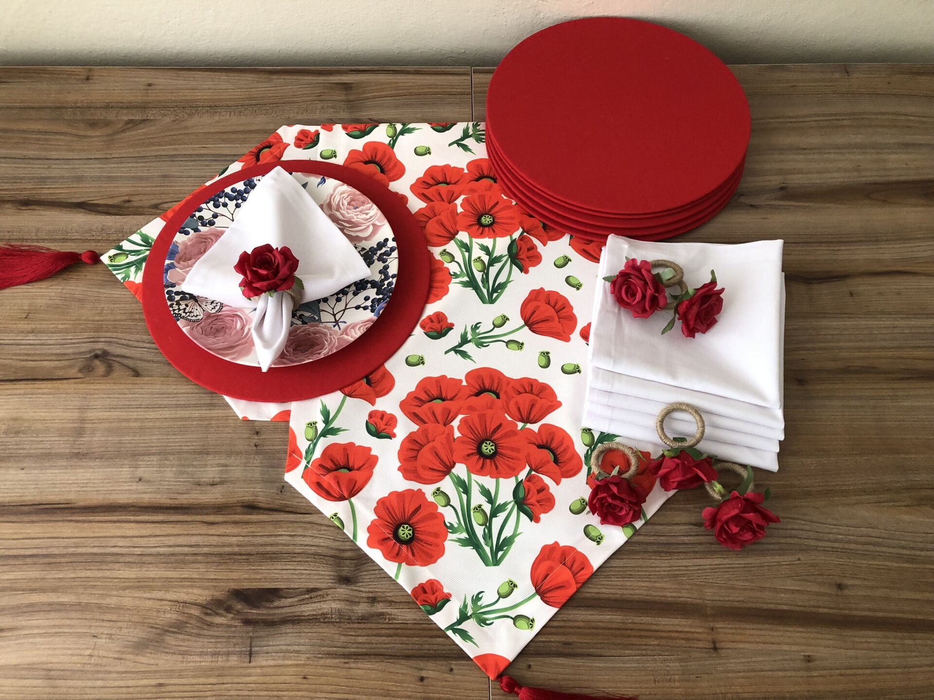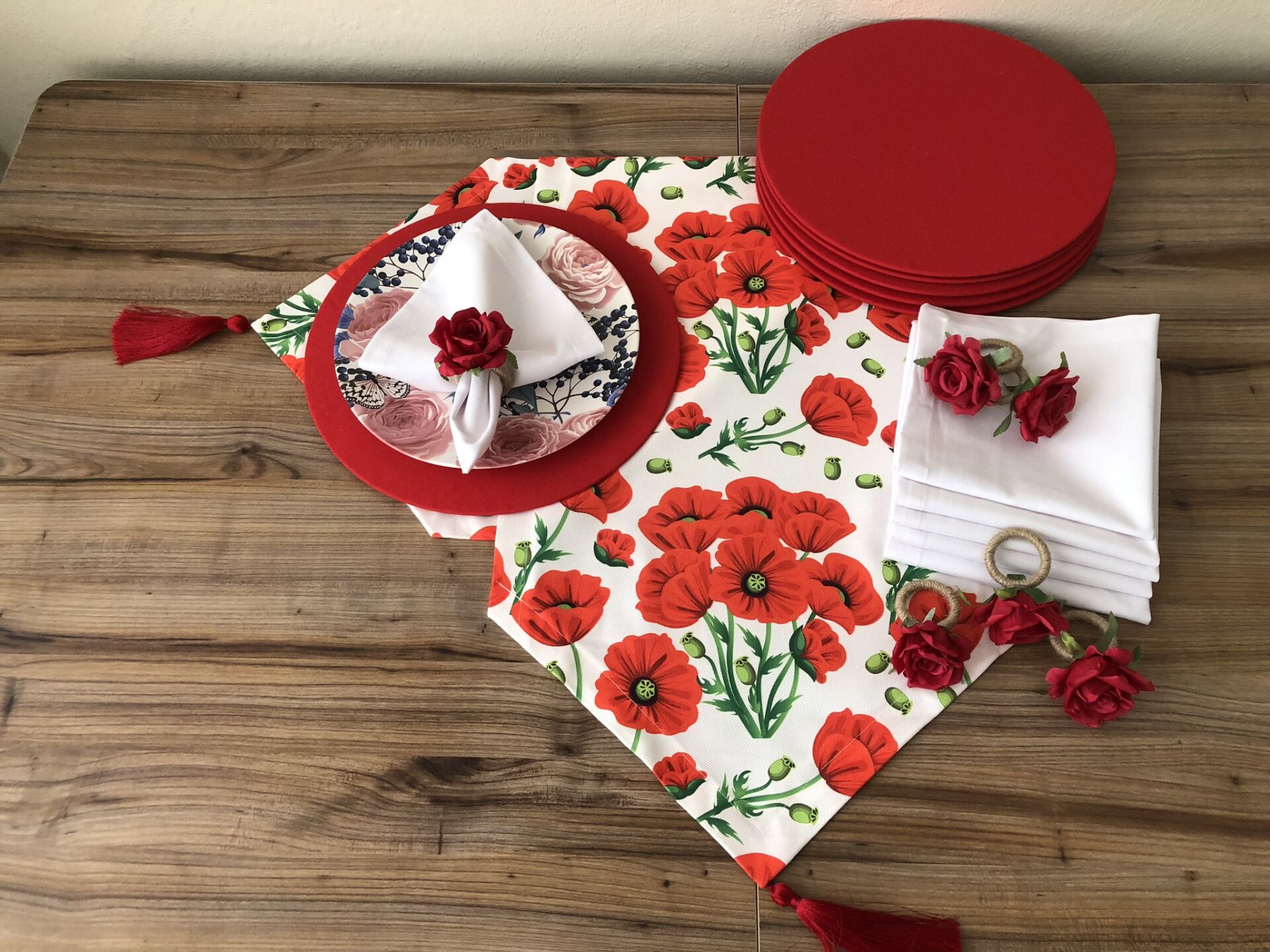 SOFRA SUNUM SETİ KIRMIZI GELİNCİK DESENLİ