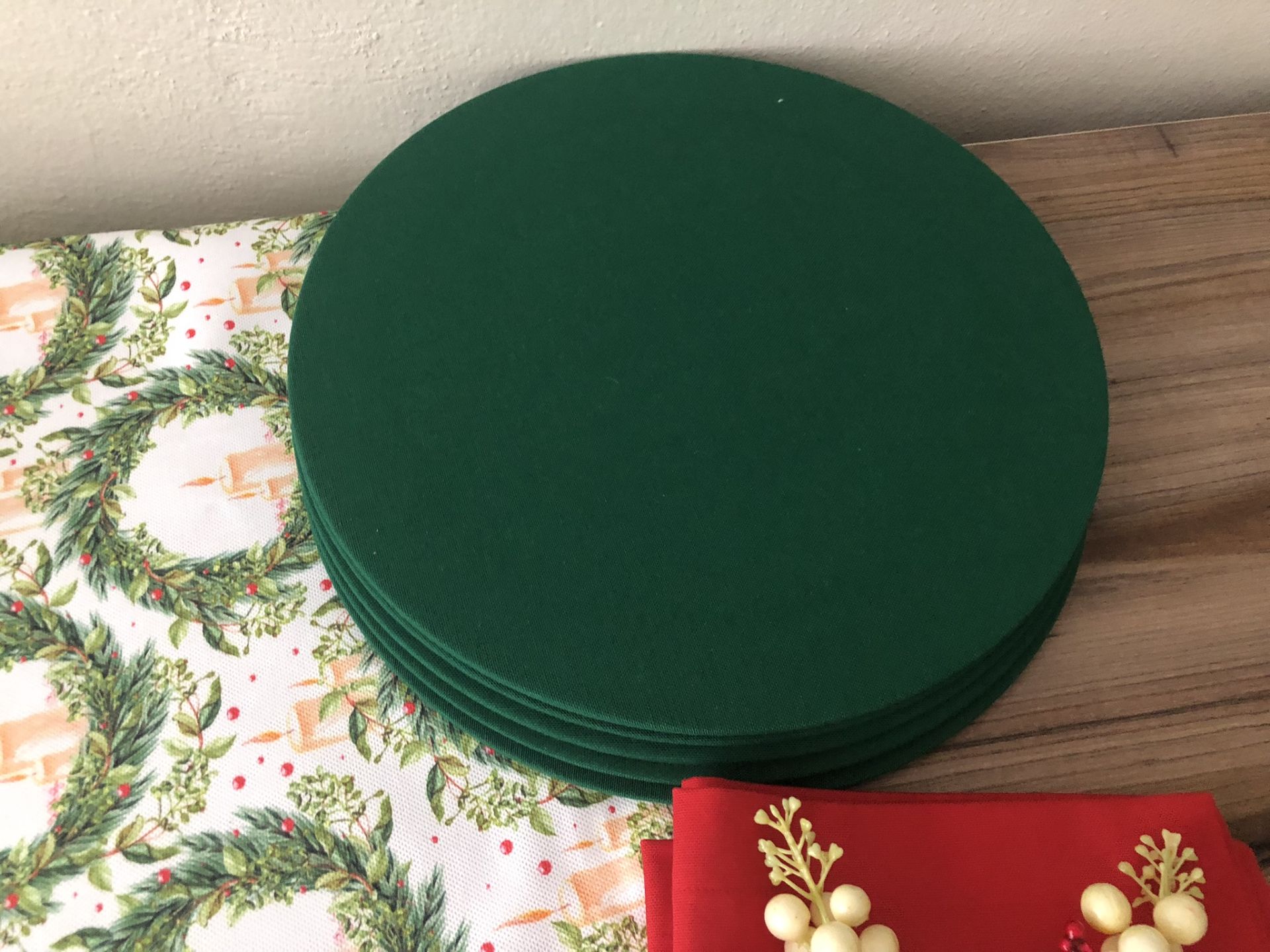 v DÜZ RENK DUCK BEZİ KUMAŞLARLA ÖZENLE YAPILMIŞ SUPLALAR 33 CM ÇAPA VE PEÇETELER 40X40 CM SAHİPTİR.