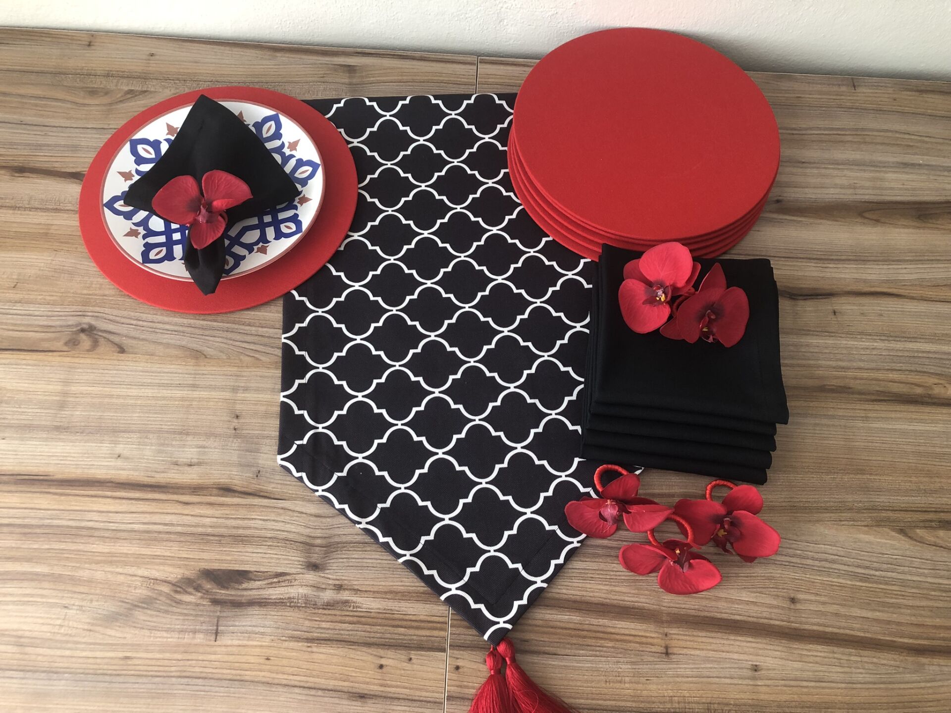 SOFRA SUNUM SETİ SİYAH MOROCCAN DESENLİ TAKIM
