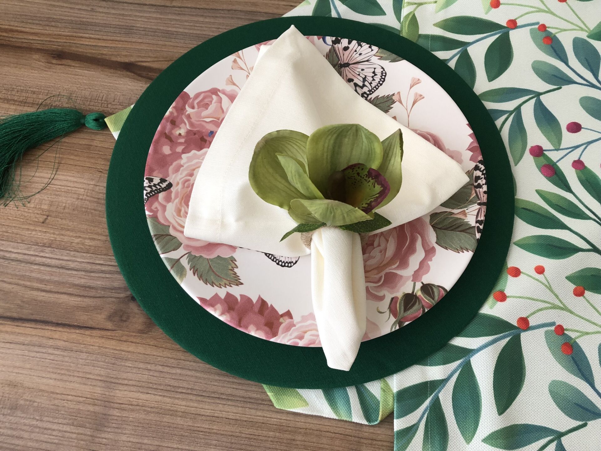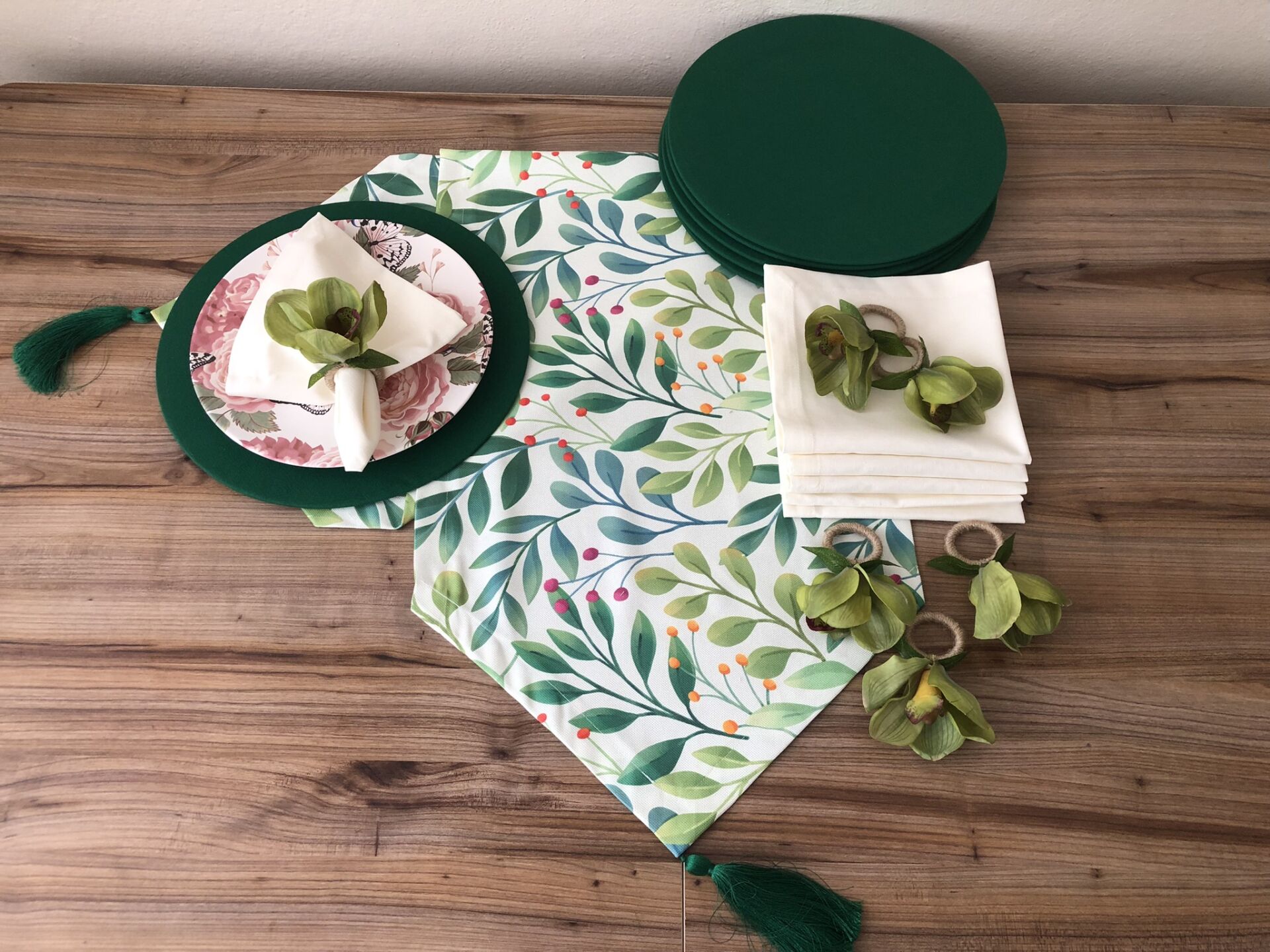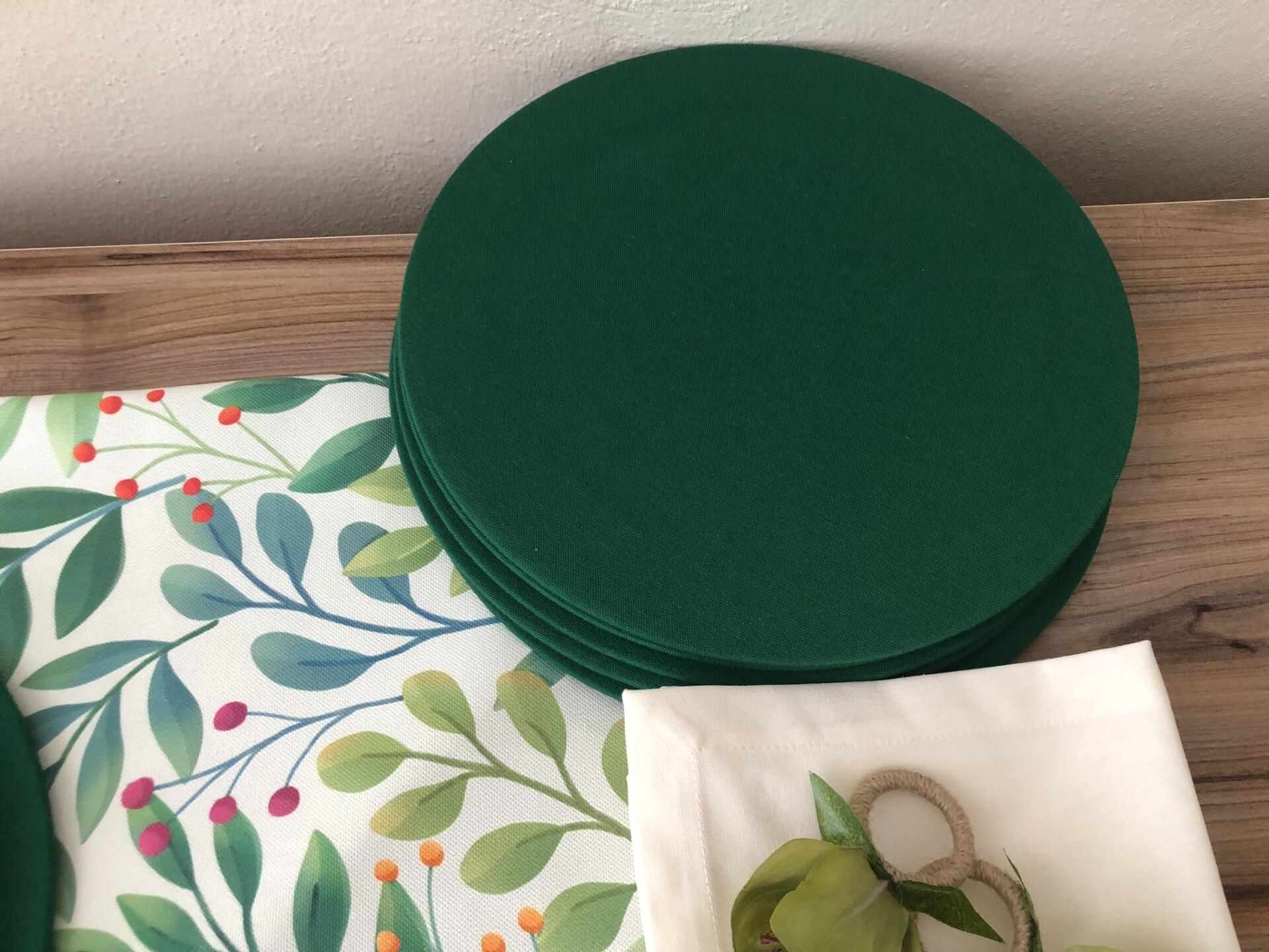 v DÜZ RENK DUCK BEZİ KUMAŞLARLA ÖZENLE YAPILMIŞ SUPLALAR 33 CM ÇAPA VE PEÇETELER 40X40 CM SAHİPTİR.