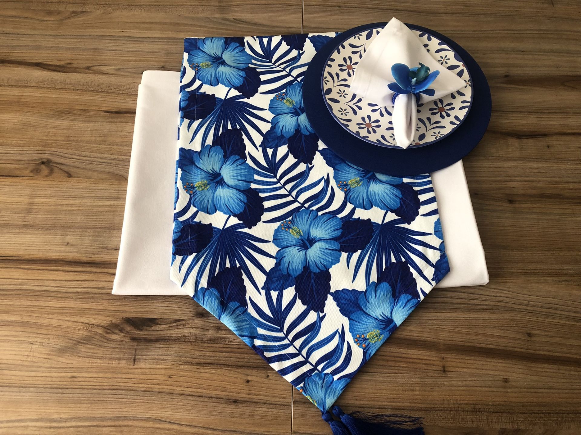 SOFRA SUNUM TAM SET MAVİ ÇİÇEK DESENLİ