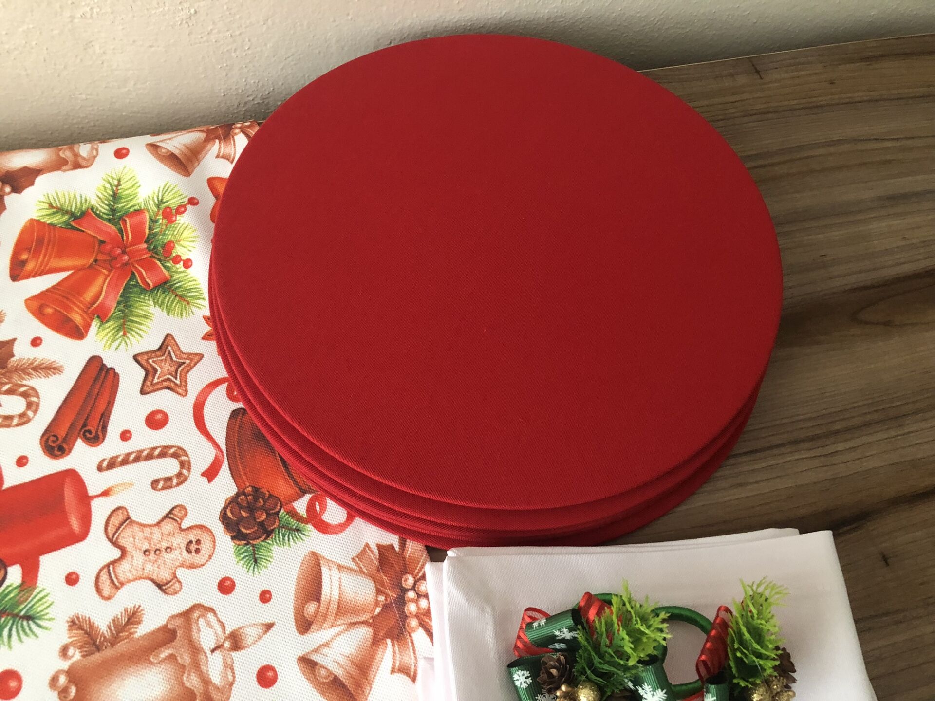 v DÜZ RENK DUCK BEZİ KUMAŞLARLA ÖZENLE YAPILMIŞ SUPLALAR 33 CM ÇAPA VE PEÇETELER 40X40 CM SAHİPTİR.