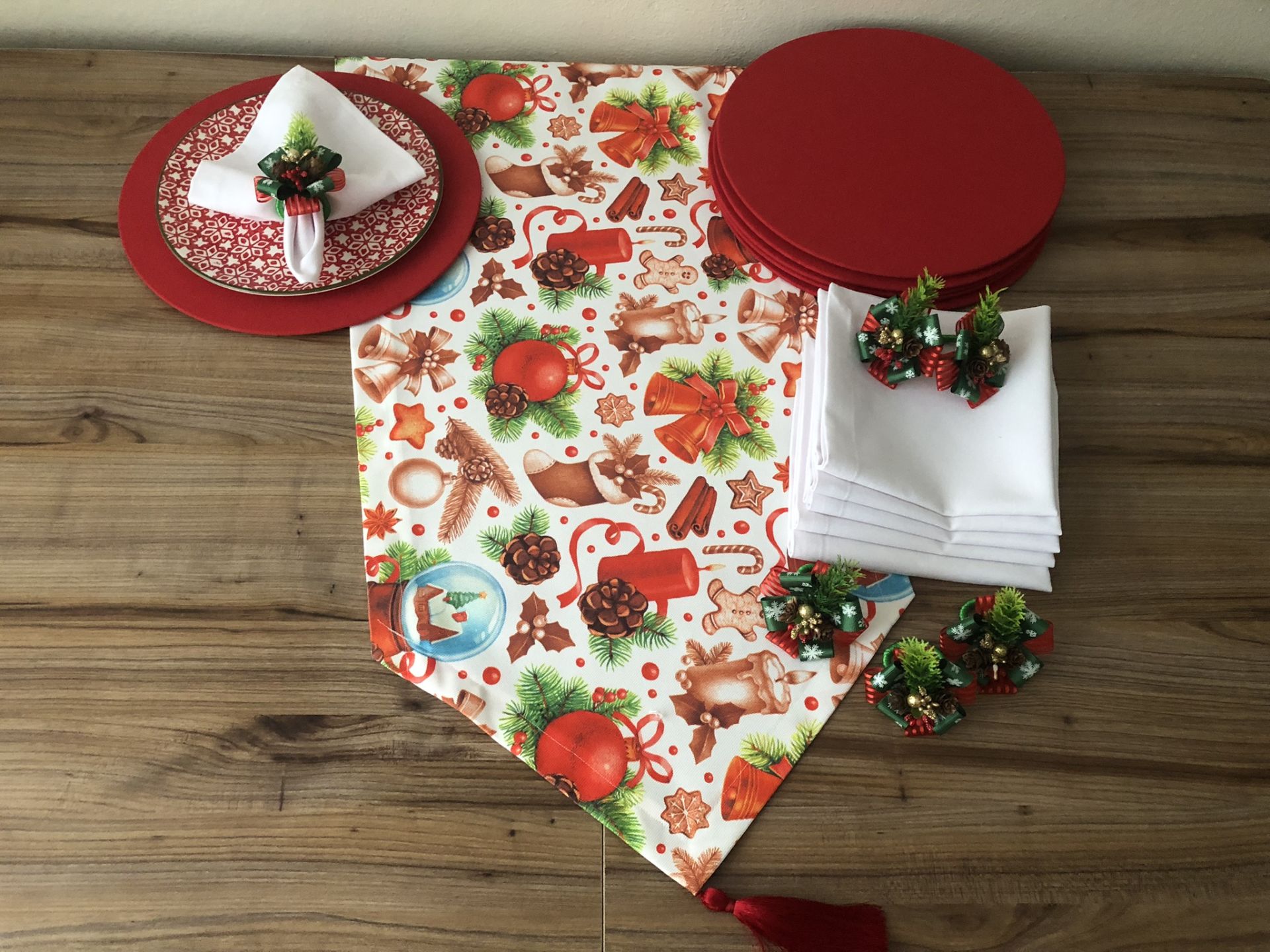 YILBAŞI SOFRA SUNUM SETİ MUM FİGÜRLÜ YILBAŞI DESENLİ
