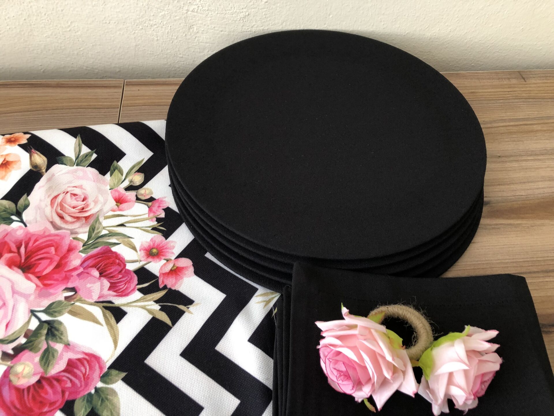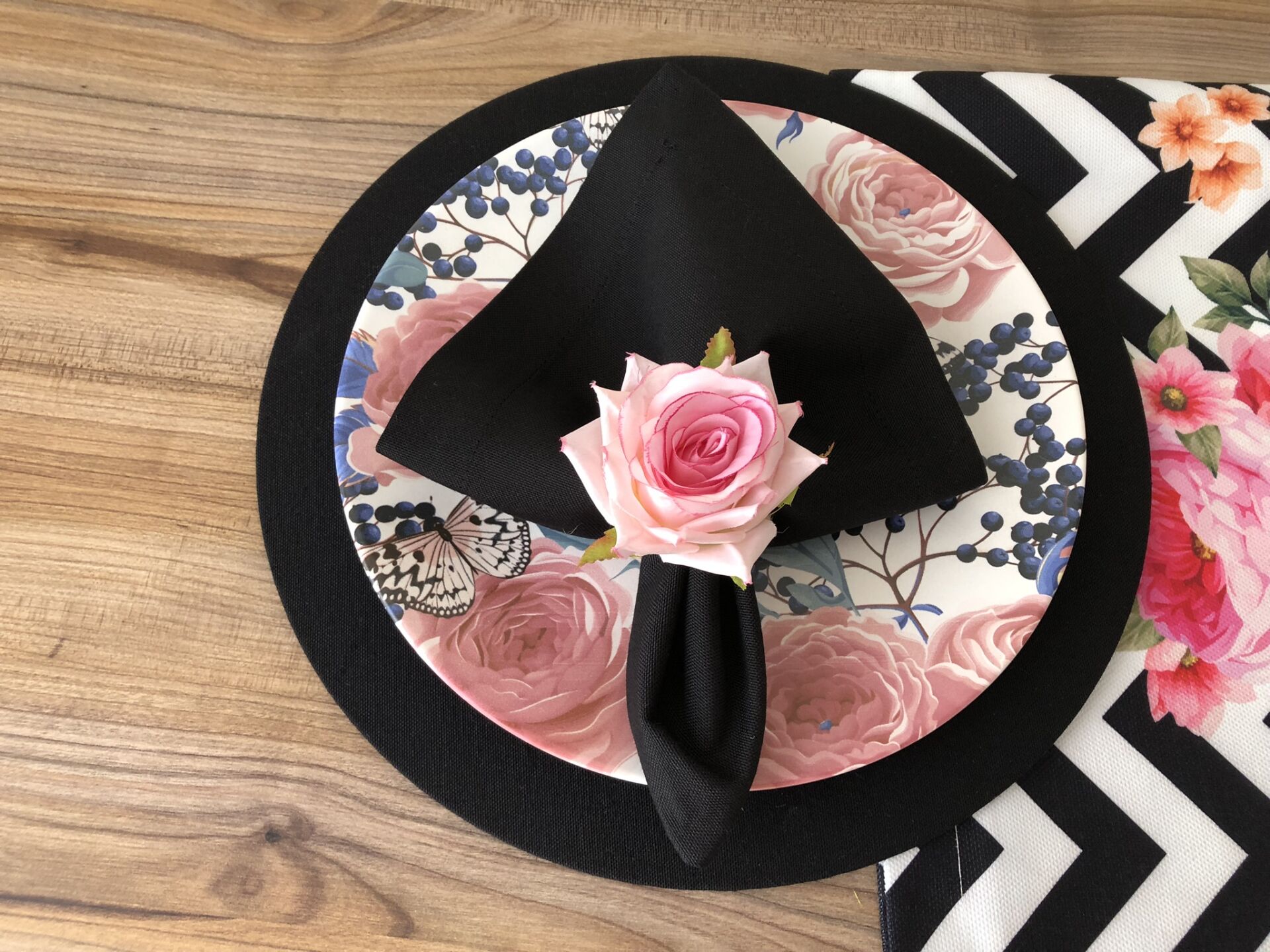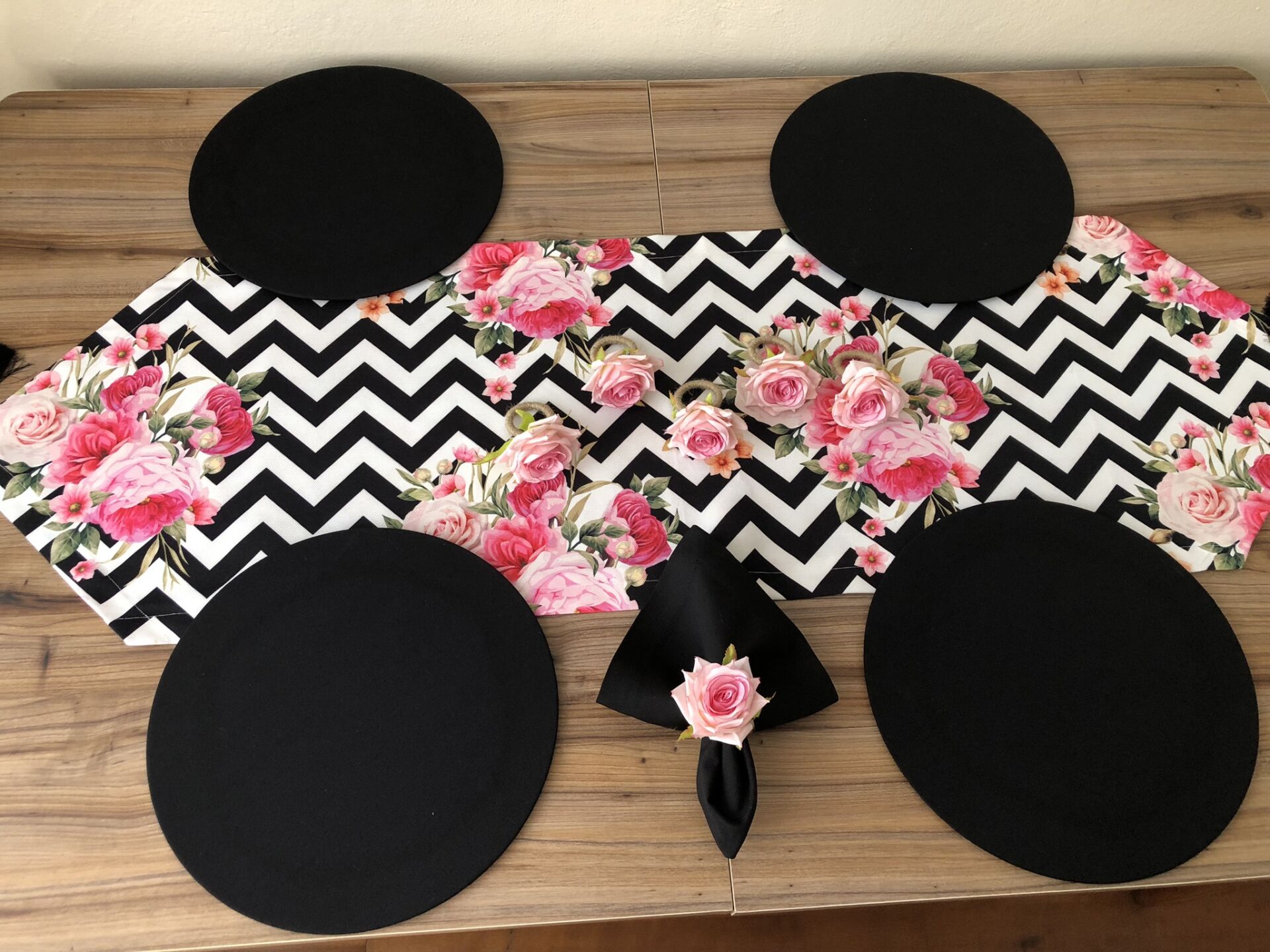 ZİGZAG ZEMİN ÜZERİNE GÜL DESENLİ SOFRA SUNUM SETİ